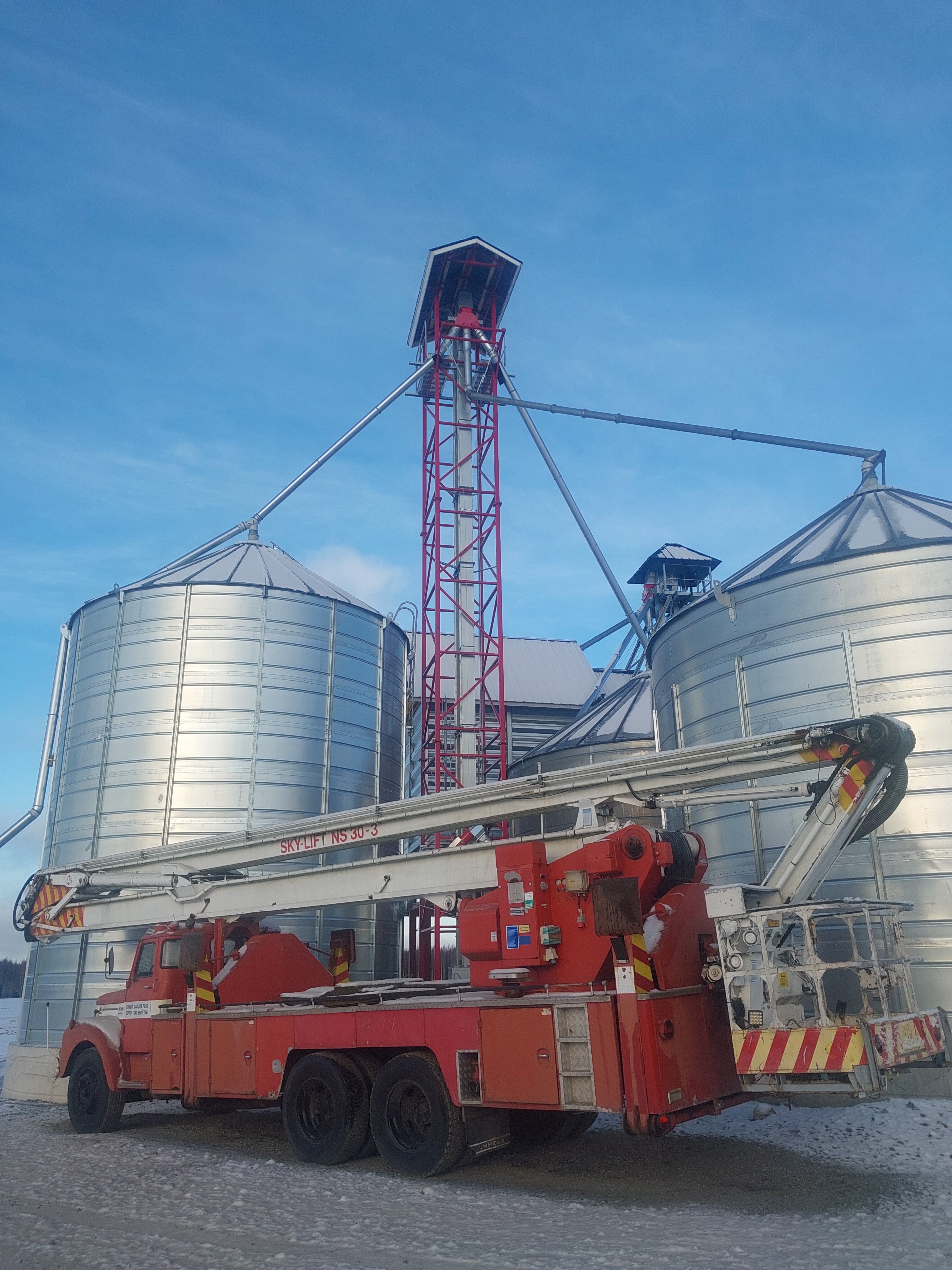 Varaan nosturiautoaikaa huomiselle että elevaattoritornin katto saataisiin asennettua ennen talvea sillä nyt on luvattu lähes tyyntä.