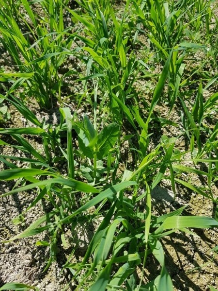 Herne-ohra seoksessa oli paljon savikkaa kasvuston joukossa. Seos kärsi kuivuudesta ja herneet jäivät lyhyiksi