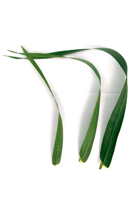 Vasemmalla lehti ilman mangaanilisää, keskellä ZM-lisällä, oikealla ZMC-lisällä.