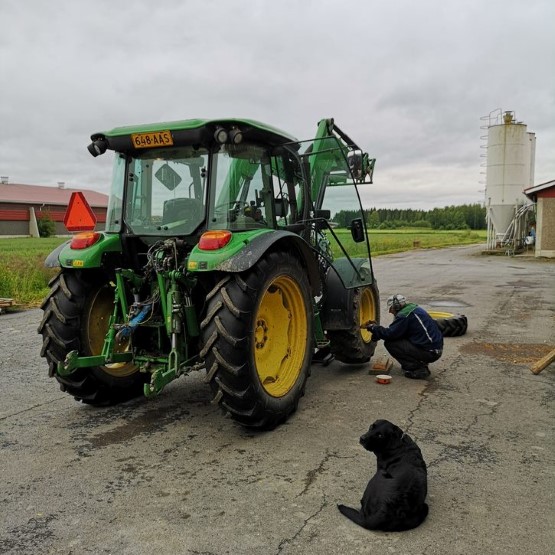Meillä on käytössä ruiskutustraktorissa kahdet eri levyiset renkaat, joista kapeampia käytetään näin kesäisin. Tällä vähennetään kasvustojen tallaamista ja tienataan jonkin verran säästyneenä kasvustona. Kasvinsuojeluruiskutukset saatiin päätökseen edellisellä viikolla viimeisten vehnienkin tullessa kunnolla tähkälle. Nyt olikin hyvä aika vaihtaa kapeammat takaisin leveämmiksi.