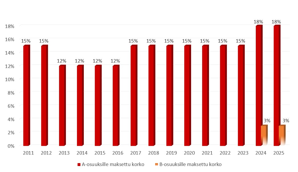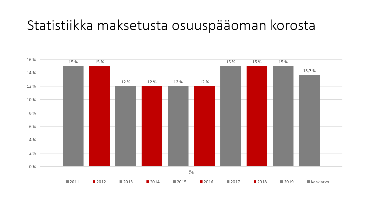 Kultakin tilikaudelta maksettava korko maksetaan sille osuuspääomalle, joka on ollut osuuskunnan tilillä tilikautta edeltävän kuukauden 30. päivänä (30. joulukuuta).