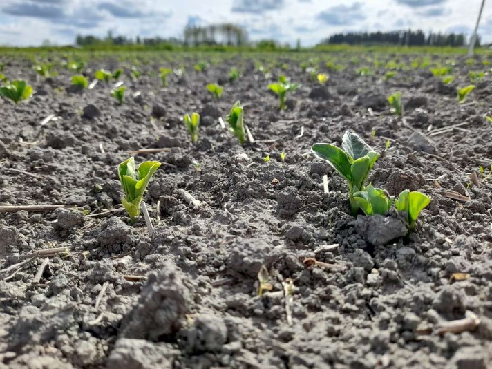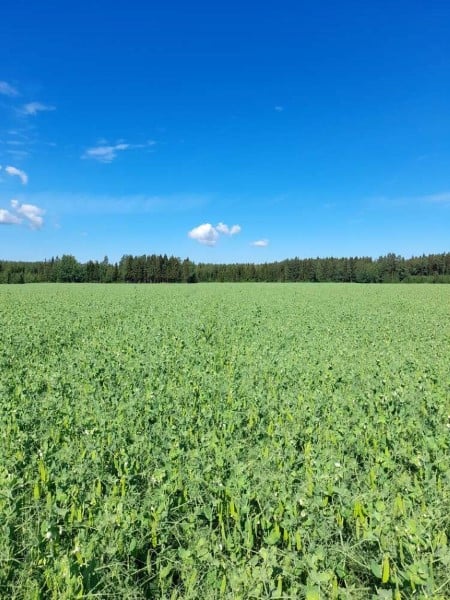Onnistunut hernekasvusto peittää koko pellon, mutta ei ole silti liian tiheä, jottei kasvusto lakoonnu.