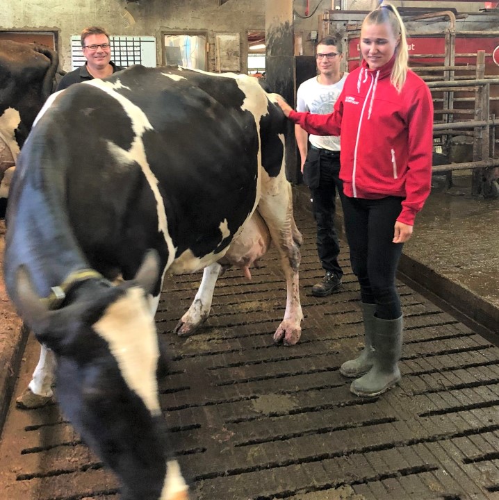 A-Foder och ÖK hälsade på hos producentfamiljen Sjöskog i Lillby för att i efterskott gratulera till deras ”100-tonnare” Inga. Inga har fått nio kalvar och mjölkat över 100 ton.