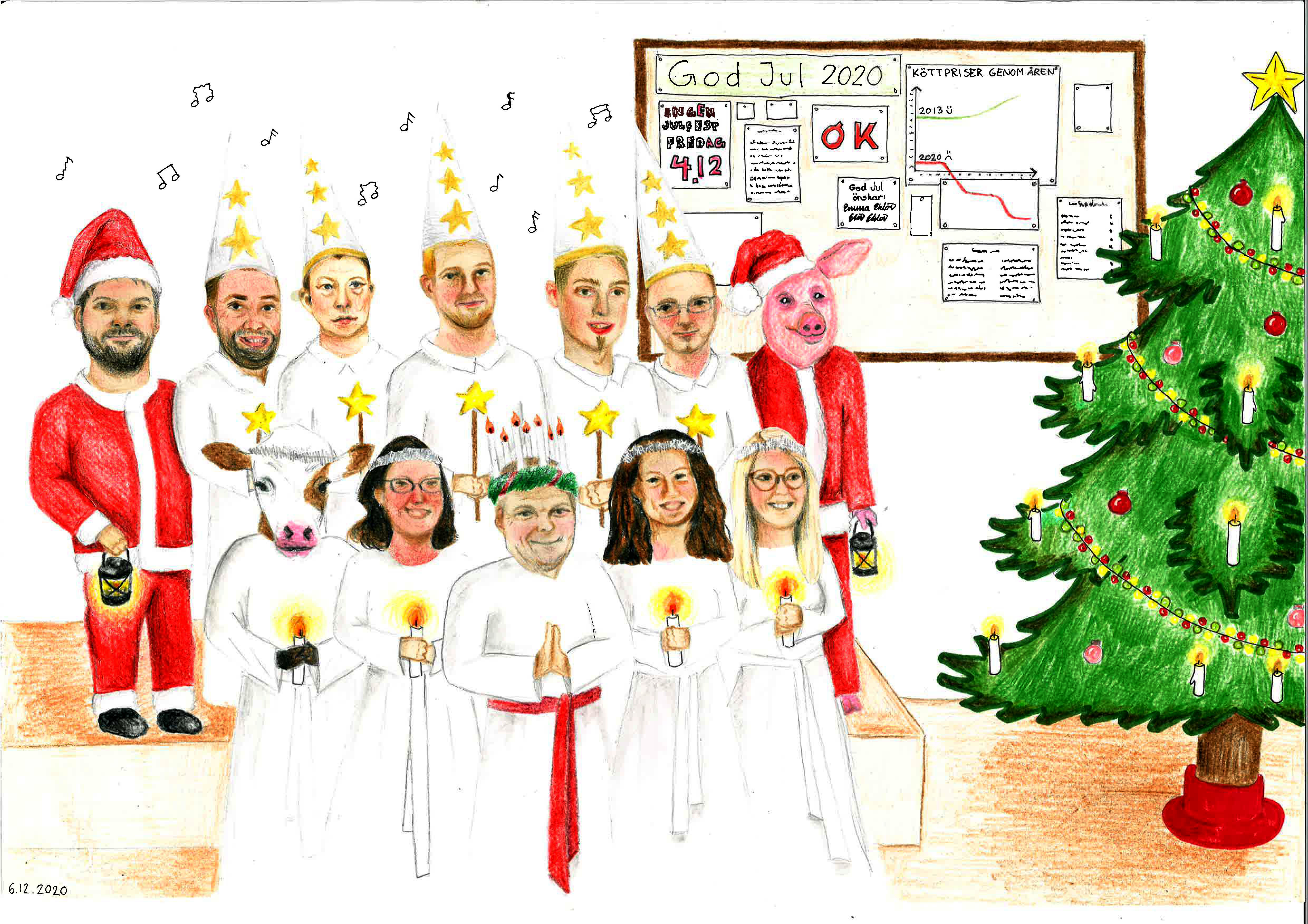 Också i år har systrarna Emma och Elin Eklöv i Forsby skickat en teckning till personalen på ÖK, den här gången ett luciatåg.
