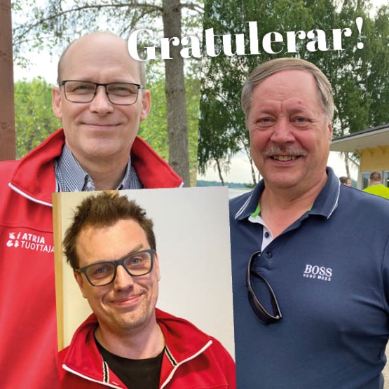 ÖK gratulerar Lasse Åberg, Christer Rönnqvist och Taneli Tirkkonen till Atrias förtjänsttecken för 40, 30 respektive 20 år i bolagets tjänst! Kända ansikten för producentkåren. Grattis!