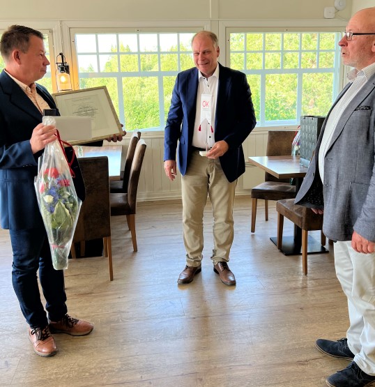 Peter Backlund är anställd som logistikansvarig för nötproduktion vid ÖK. I samband med ÖK-styrelsens sommarsamling i Jakobstad den 14 juli 2023 premierades han med förtjänsttecken för sitt arbete och sin insats vid ÖK så här långt.