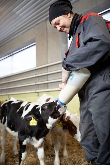 Ternivasikoiden juottomääriä seurataan päivittäin. Juottoautomaatin tiedoista näkee notkahdukset helposti. Vasikoiden voinnista kertoo niiden yleinen olemus, korvien asento, silmät ja esimerkiksi nukkumisasento. Eläinten havainnointia helpottaa leveä karsina, jonka syvyys on vain neljä metriä. ”Kuumemittari kulkee aina haalarin taskussa ja kynnys lämmön mittaamiseen on matala, jos jotain poikkeavaa havaintaan. Silloin ehditään aloittaa lääkitys ajoissa”, Katriina kertoo.