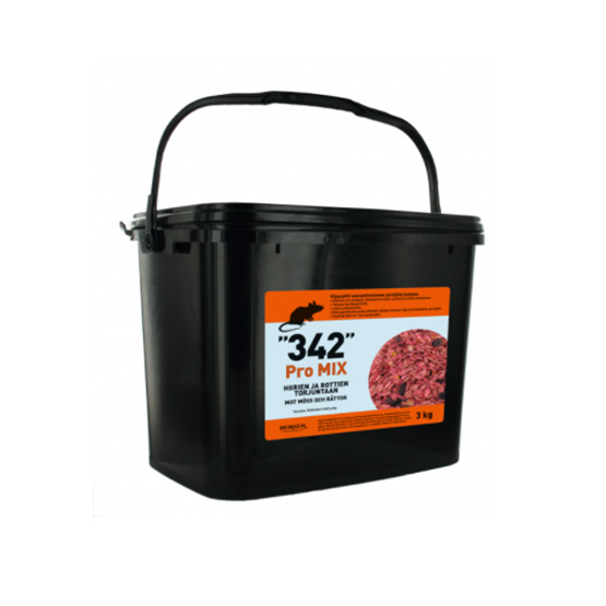 342 Pro Mix 3kg on tehokas ja maittava, käyttövalmis viljasyötti hiirien ja rottien torjuntaan.