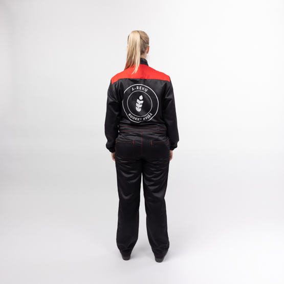 -Selässä ja rinnassa A-Rehun painatukset.