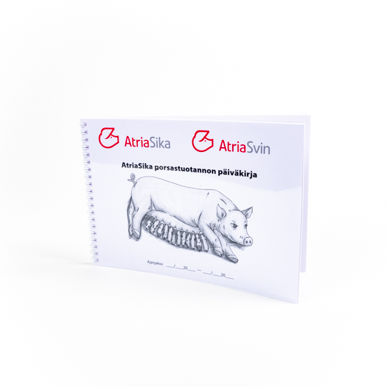 AtriaSika porsastuotannon päiväkirja on suunniteltu tuotannon seurantaan ja apuvälineeksi sikalan päivittäisiin rutiineihin. Kirjasta löytyy mm. hoitokoodit, porsitusosaston seurantalomake ja lääkityskirjanpito.