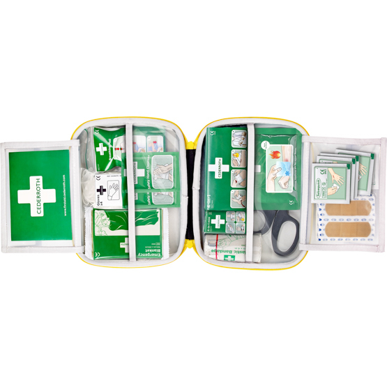 Cederrothin First Aid Kit MEDIUM on kätevä ensiapulaukku mukana pidettäväksi. Tuotteet on pakattu läpinäkyviin muovitaskuihin, joista tarvikkeet