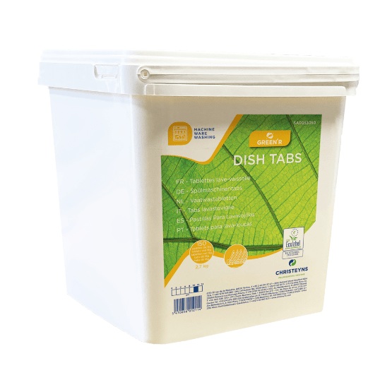 Christeyns GREEN’R Dish Tabs – ympäristöystävällinen ja tehokas astianpesutabletti. Erinomainen pesutulos myös matalissa lämpötiloissa.