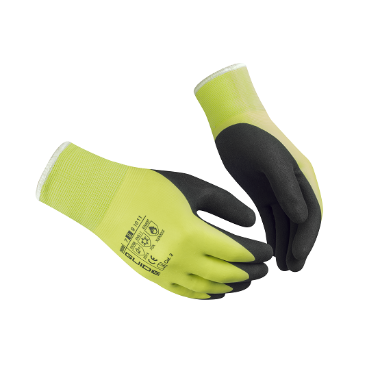 Talvivuorellinen, lateksilla kaksoispinnoitettu käsine.
