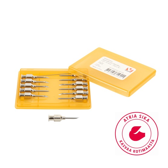 Atria Sika tuotanto-ohjeen mukaiset, teurasprosessissa havaittavat metallineulat.