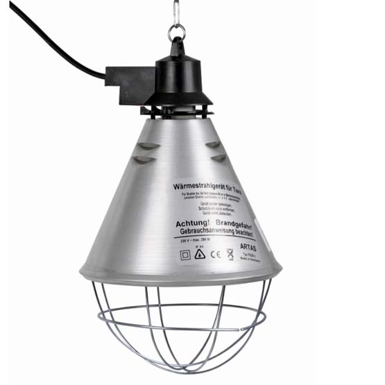 Suojakupu lämpölampulle Ominaisuudet: -Johdon pituus 2,5m -Kuvun halkaisija 21cm -Mukana suojaritilä ja kiinnitysketju -Etäisyys eläimiin min. 60cm -Teho max. 250W -Lämpölampuille, joissa E27-kanta