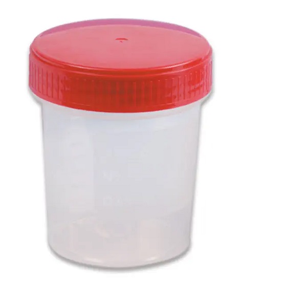 Näytepurkki mitta-asteikolla ja kierrekannella.