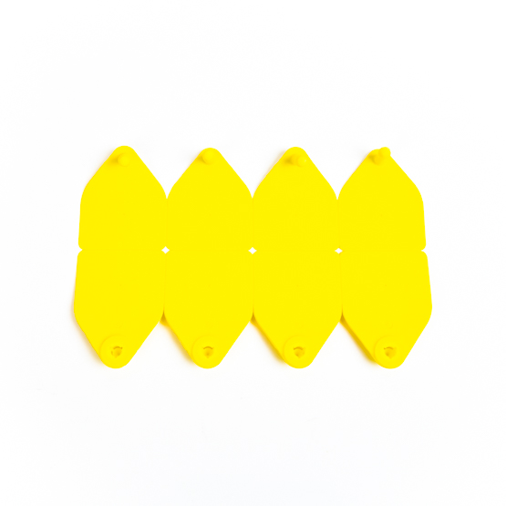 Neoflex merkissä on läppä molemille puolille korvaa. Naaraspuolen mitat ovat 7,5cm x 5,5cm, urospuolen 6,5cm x5,5 cm.