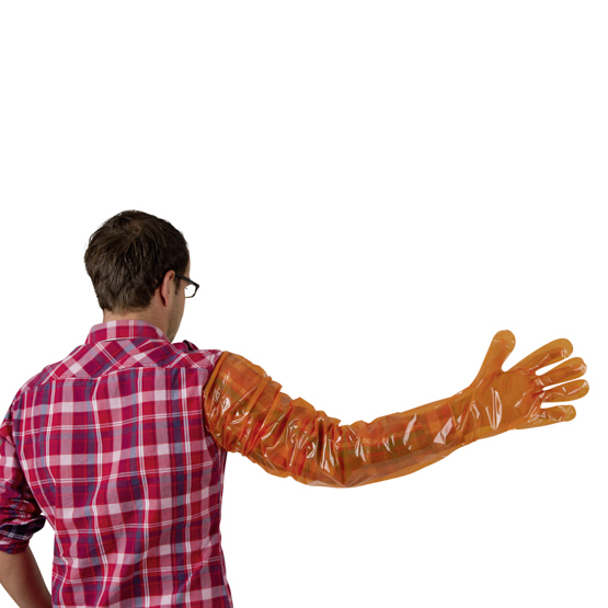 Oranssi kertakäyttöinen tutkimuskäsine. Ominaisuudet: -Materiaali polyetyleeniä -Oranssi -Pituus 90cm -Paksuus 0,025mm Pakkaus: 100 kpl rasiassa