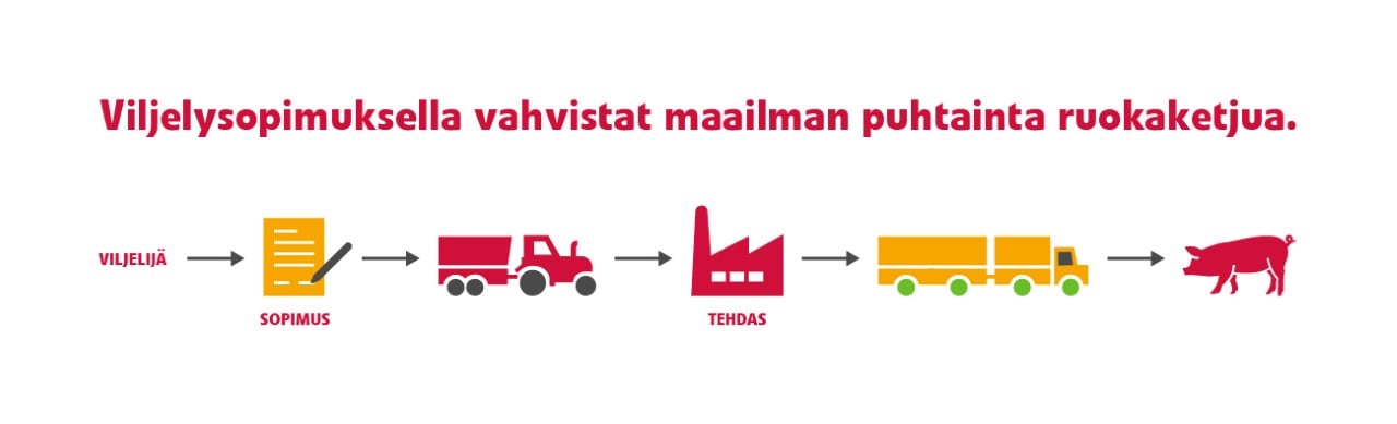 Teemme viljelysopimuksia kaikista viljalajeista ja palkokasveista, joita käytämme tehtaillamme Varkaudessa ja Koskenkorvalla. Omille sopimusviljelijöillemme pystymme varmistamaan viljan menekin kaikissa markkinatilanteissa. Samaan sopimukseen kuuluvat myös hyöty valkuaishinnoittelusta kaikille rehuviljalajeille, sekä vehnän kilpailukykyisin hinta rehu- tai leipälaatuisena. Isojyväiselle kauralle maksamme myös lajikelisän.